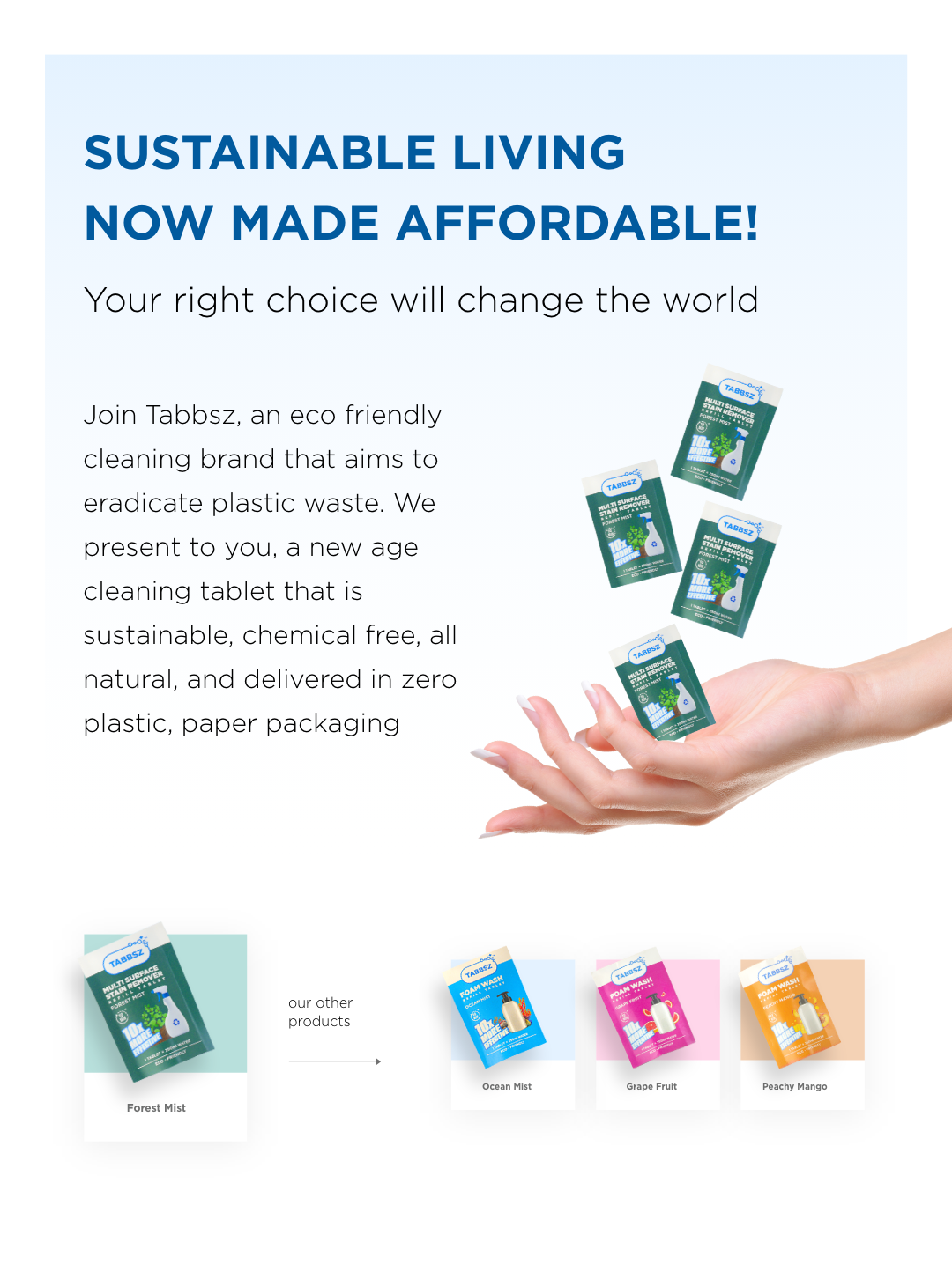 Each TABBSZ Multi-Surface Stain Remover tablet saves 25 grams of plastic by eliminating the need for single-use plastic spray bottles. Simply reuse your existing bottle and reduce waste with every refill!