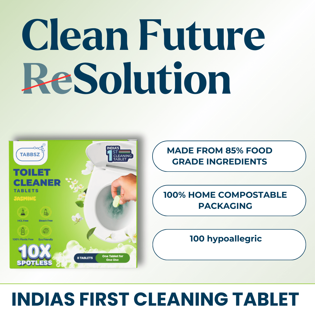 India’s First Toilet Cleaner Tabs – pre-dosed, acid-free, and plastic-free for everyday freshness. replace 500 ml of liquid with just 8 tabs.