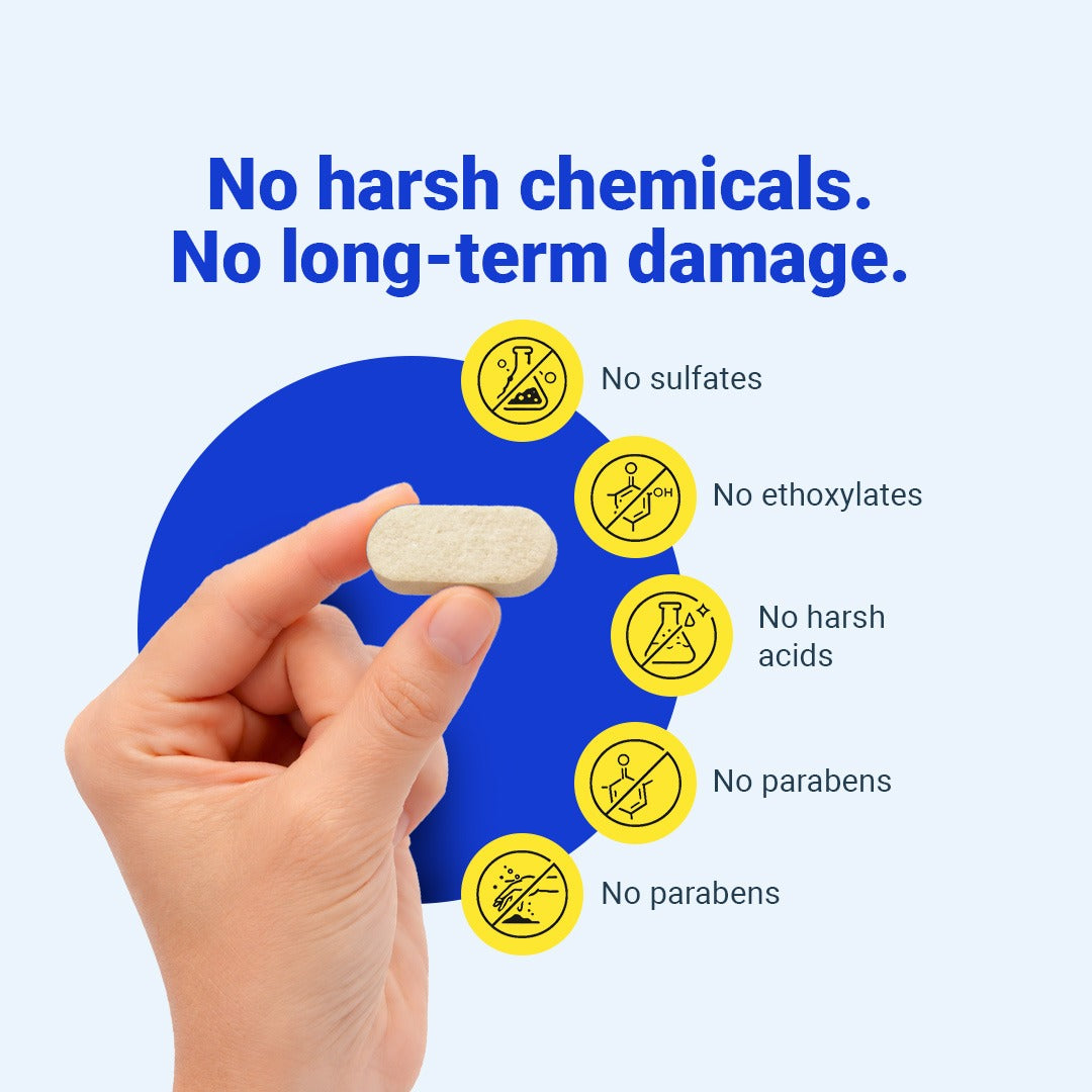 TABBSZ Washing Machine Descaler Tabs are single-use, single-dose cleaners that deep clean your machine from the inside out. One tablet per cycle removes limescale, detergent residues, and foul odors, keeping your machine running like new.